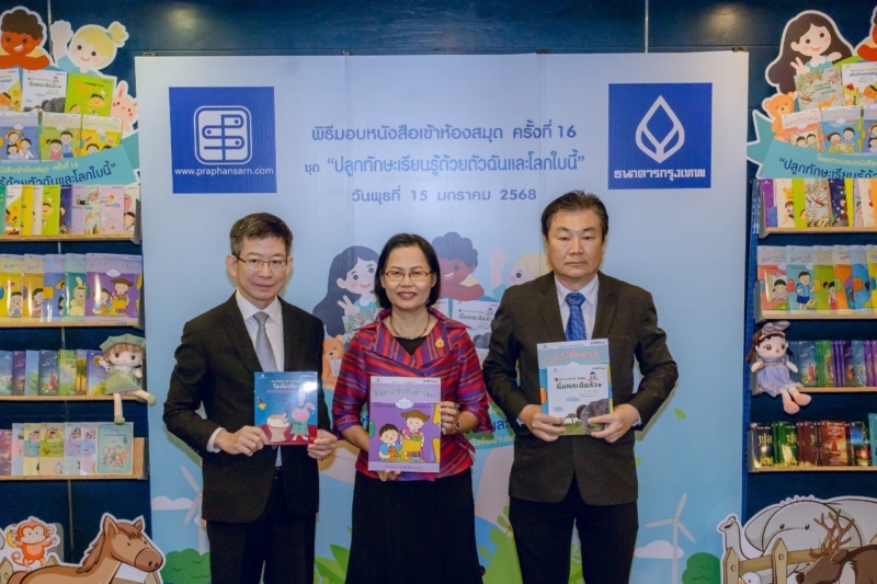 ธนาคารกรุงเทพ และสำนักพิมพ์ประพันธ์สาส์น จับมือเหนียวแน่น ร่วมกันปลูกฝังอนาคตของชาติให้กลายเป็นเมล็ดพันธุ์ที่ดีด้วยการจัดตั้งโครงการมอบหนังสือ ปีที่ 16 โดยปีนี้ใช้ชื่อโครงการว่า “ปลูกทักษะเรียนรู้ด้วยตัวฉันและโลกใบนี้” จัดขึ้น เมื่อ 15 มกราคม พ.ศ.2568 ที่ผ่านมา ณ สำนักงานใหญ่ธนาคารกรุงเทพ (สีลม) ภายในงานได้รับเกียรติจาก ดร.กอบศักดิ์ ภูตระกูล กรรมการรองผู้จัดการใหญ่ ธนาคารกรุงเทพ จำกัด (มหาชน)เข้าร่วมพิธีมอบหนังสือให้กับ ดร.รัตนา แสงบัวเผื่อน ผู้อำนวยการสำนักพัฒนานวัตกรรมการจัดการศึกษา รักษาการในตำแหน่งที่ปรึกษาด้านพัฒนากระบวนการเรียนรู้ พร้อมกับ และ คุณอาทร เตชะธาดา กรรมการบริหาร บริษัท สำนักพิมพ์ประพันธ์สาส์น จำกัด เพื่อส่งมอบหนังสือชุด Joyful Chrillden Book เรียนรู้ด้วยตัวฉันและโลกใบนี้ อันได้แก่ นิทาน 2 ภาษา ไทย-อังกฤษ จำนวน 12 เรื่อง ส่งต่อความรู้ผ่านเรื่องเล่า เน้นเนื้อหาเกี่ยวกับการสอนให้เด็กรู้จักตัวเองและผู้อื่น รวมไปถึงสิ่งแวดล้อม หนังสือเด็กประถมวัย สาระการเรียนรู้ จำนวน 10 เรื่อง เพื่อเสริมทักษะให้เด็กประถมวัย และหนังสืออ่านนอกเวลา จำนวน 25 เรื่อง เป็นหนังสือที่ถูกคัดสรรมาเพื่อประจำห้องสมุด สามารถสร้างเสริมพัฒนาการ กระตุ้นสติปัญญา ส่งเสริมจินตนาการให้กับเด็กได้อย่างยอดเยี่ยม หมดนี้จำนวนกว่า 100,000 เล่ม มอบให้แก่ห้องสมุดประจำโรงเรียนทั่วกรุงเทพฯ ปริมณฑล และต่างจังหวัด รวม 400 แห่ง มูลค่า 8 ล้านบาท ด้วยรูปแบบไฮบริดอีเวนต์ มีตัวแทนจากโรงเรียนต่าง ๆ มาร่วมงานด้วยตัวเอง และอีกส่วนเข้าร่วมงานทางออนไลน์ผ่านระบบ Zoom โดยแสดงภาพผ่านจอ LED ด้านบนเวที ที่ยังใช้เปิดวิดีทัศน์ชุด “ธนาคารความรู้” เพื่อตอกย้ำว่า ธนาคารกรุงเทพ ยังคงร่วมสนับสนุนให้เยาวชนไทย เติบโตอย่างมีคุณภาพ