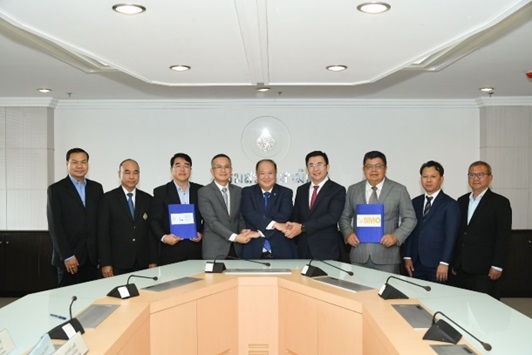 นายกิตติพงษ์ พวงมาลา (ที่ 4 จากขวา) ประธานเจ้าหน้าที่บริหาร นายกุศล ศรีเปารยะ ) ประธานเจ้าหน้าที่บริหารการเงิน นายศักดา ทองรอง รองกรรมการผู้จัดการอาวุโส สายงานสำนักงาน บริษัท กลุ่มสมอทอง จำกัด พร้อมด้วย นายณัฐกร อุเทนสุต ประธานกรรมการ นายสัญชัย ชาสมบัติ (ที่ 4 จากซ้าย) ผู้อำนวยการองค์การสุรา นายวรศักดิ์ บุรณศิริ (ที่ 3 จากซ้าย) รองผู้อำนวยการฝ่ายผลิต องค์การสุรา กรมสรรพสามิต ร่วมลงนามในบันทึกข้อตกลงความร่วมมือ “โครงการปรับปรุงกระบวนการเพื่อเพิ่มผลิตภาพและลดต้นทุนการผลิตแอลกอฮอล์ ระหว่าง องค์การสุรา กรมสรรพสามิต กับ บริษัท กลุ่มสมอทอง จำกัด” ณ ห้องราชวัตร ชั้น 5 กรมสรรพสามิต