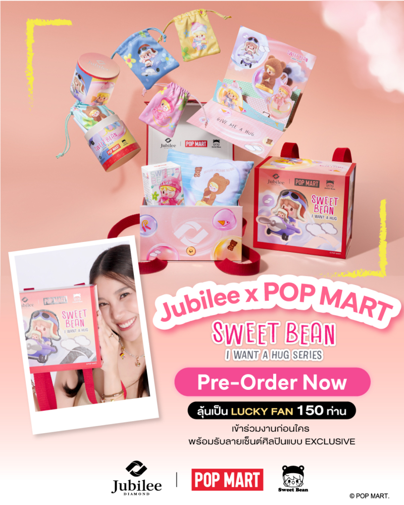 จากการร่วมมือครั้งประวัติศาสตร์ที่นำความลักชูรีมาผสานกับความน่ารัก Jubilee Diamond ขอนำเสนอ “Sweet Bean – I Want A Hug Series” คอลเลกชันเครื่องประดับเพชรแท้ระดับไฮเอนด์ที่สร้างสรรค์ร่วมกับ POP MART มอบโอกาสสุดเอ็กซ์คลูซีฟให้คุณเป็นเจ้าของก่อนใครในโลก เปิดให้สั่งจองแล้ว พร้อมสิทธิพิเศษ 6 ต่อห้ามพลาดสำหรับช่วงพรีออเดอร์นี้เท่านั้น!