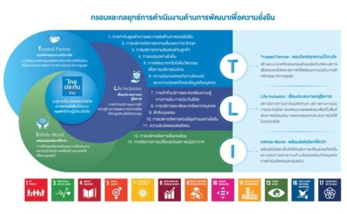 “เราให้ความสำคัญต่อการดำเนินธุรกิจเพื่อสร้างความยั่งยืนทั้งต่อองค์กรและผู้มีส่วนได้เสียทุกภาคส่วน รวมถึงสังคมไทยมาอย่างต่อเนื่อง ไทยประกันชีวิตจึงเป็นบริษัทประกันชีวิตแห่งแรกที่จัดทำแผนแม่บทความรับผิดชอบต่อสังคมเชิงกลยุทธ์ และยกระดับสู่แผนแม่บทการพัฒนาที่ยั่งยืน ซึ่งอ้างอิงจากเป้าหมายการพัฒนาที่ยั่งยืนขององค์การสหประชาชาติตามแนวทาง UN Global Compact โดยกำหนดกรอบกลยุทธ์การดําเนินงานด้านความยั่งยืนของบริษัทฯ “TLI” Sustainability Strategy ประกอบด้วย Trusted Partner, Life Inclusion และ Infinite World ซึ่งจะให้ความสำคัญทั้งในกระบวนการทางธุรกิจ (CSR-In-Process) และการทำกิจกรรมเพื่อสังคม (CSR-After-Process) ควบคู่กัน”