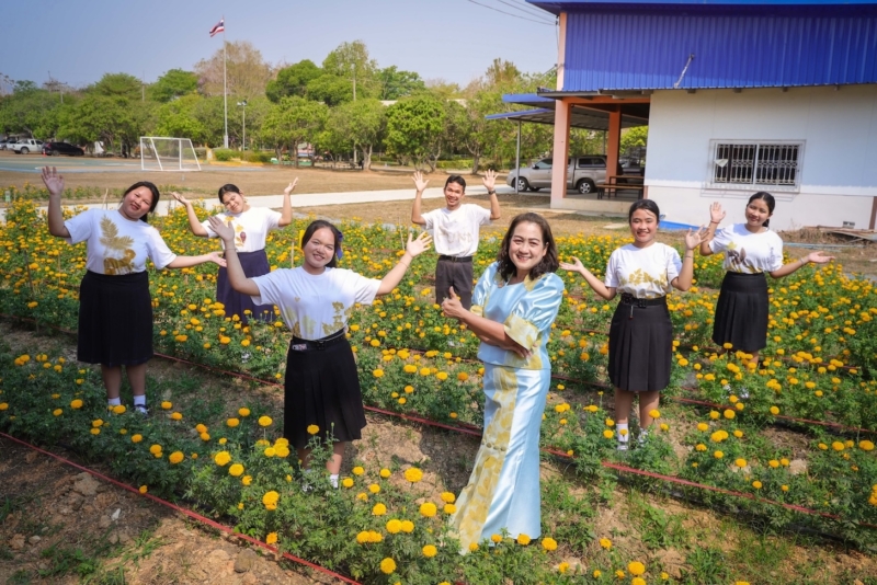 ด้านตัวแทนผู้ประกอบการจิ๋ว “น้องลูกปลา” นส.แก้วตา เต็งมิ่ง นักเรียนชั้นม.5 ตอบด้วยรอยยิ้มว่าหนูชอบรายวิชาการแปรรูปผลิตภัณฑ์จากดาวเรืองเป็นผ้ามัดย้อมและผ้าพิมพ์ลายธรรมชาติ (Eco Print) ตั้งแต่การปลูก ตัด ตากแห้งดอกดาวเรือง ไปจนถึงกระบวนการมัดย้อมค่ะ ที่ชอบเนื่องจากเราได้ออกแบบจินตนาการลายเองจากใบไม้ที่หาได้ในโรงเรียน ซึ่งแต่ละชิ้นที่ออกมาลายจะไม่ซ้ำกัน เห็นผลงานแล้วรู้สึกภูมิใจค่ะ