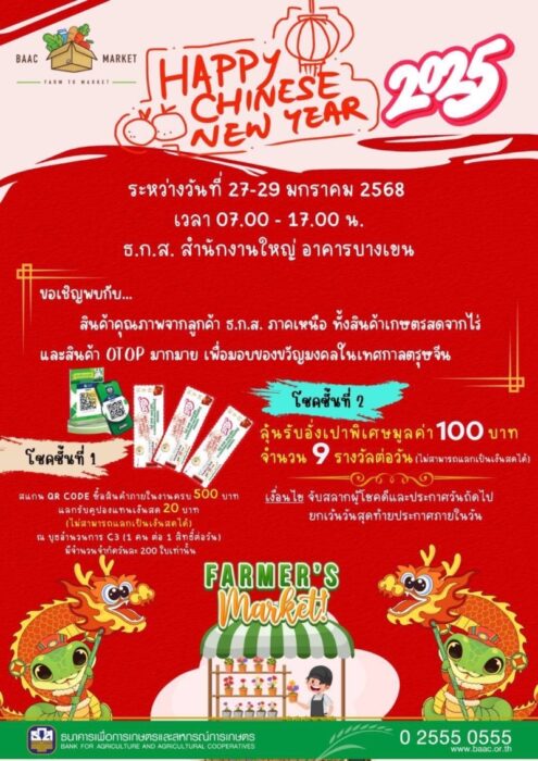1 min read ข่าวประชาสัมพันธ์ ธ.ก.ส. จัดงาน “ Happy Chinese New Year 2025”ต้อนรับเทศกาลตรุษจีน จัดเต็มสินค้าเกษตรมาจำหน่าย 27-29 ม.ค.นี้ 25 มกราคม 2025 admin