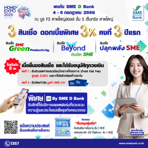 1 min read การเงิน-การลงทุน รมช.เผ่าภูมิ เปิดบูธ SME D Bank ล่องใต้ร่วมงาน ‘MONEY EXPO HATYAI’ 4 กรกฎาคม 2025 admin
