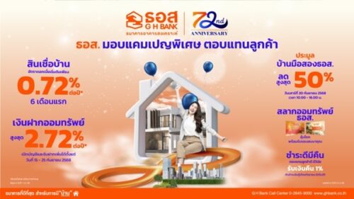1 min read การเงิน-การลงทุน ธอส. ฉลองครบ 6 รอบ 72 ปี จัดเต็มแคมเปญพิเศษตอบแทนลูกค้า นำโดยสินเชื่อบ้านดอกเบี้ยต่ำ 0.72% ต่อปี เงินฝากดอกเบี้ยสูงสุด 2.72% ต่อปี 3 กันยายน 2025 admin