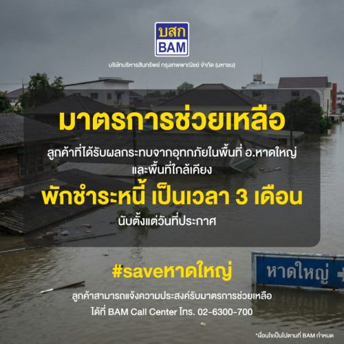 1 min read ข่าวประชาสัมพันธ์ BAM ออกมาตรการพักชำระหนี้ 3 เดือน ช่วยเหลือลูกค้าประสบภัยน้ำท่วมภาคใต้ 25 พฤศจิกายน 2025 admin