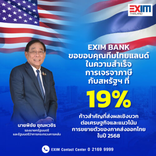 1 min read การเงิน-การลงทุน EXIM BANK ชี้อัตราภาษีนำเข้าสหรัฐฯ 19% ผลสำเร็จการเจรจาของทีมไทยแลนด์ หนุนภาคส่งออกไทยปี 68 ขยายตัวดีขึ้น 2 สิงหาคม 2025 admin
