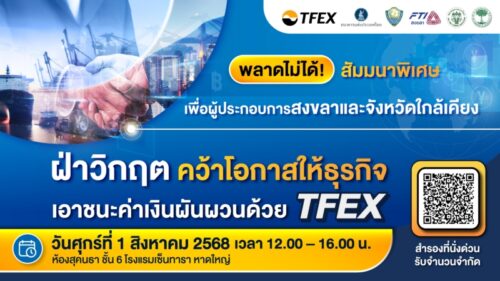 1 min read การเงิน-การลงทุน เสริมแกร่งธุรกิจในสัมมนา “ฝ่าวิกฤต คว้าโอกาสให้ธุรกิจ เอาชนะค่าเงินผันผวนด้วย TFEX” 21 กรกฎาคม 2025 admin