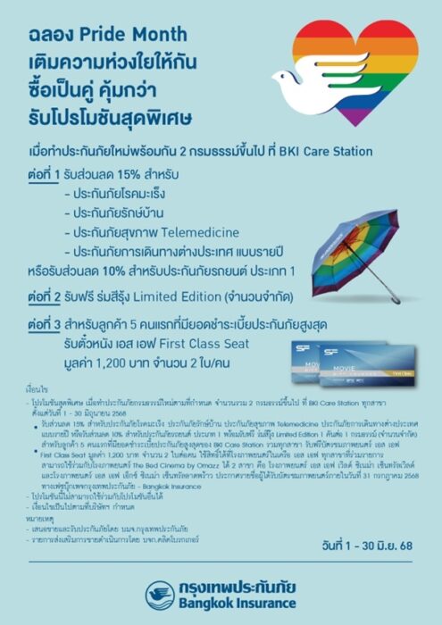1 min read ประกัน กรุงเทพประกันภัย ร่วมเฉลิมฉลองเทศกาล Pride Month จัดโปรโมชันสุดพิเศษ 9 มิถุนายน 2025 admin
