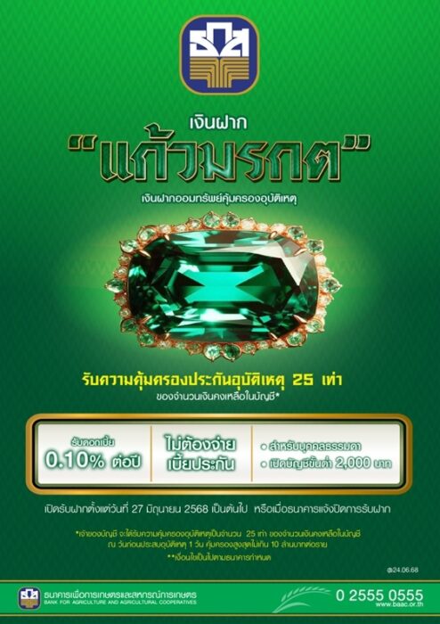 1 min read การเงิน-การลงทุน ธ.ก.ส. เปิดตัว “เงินฝากแก้วมรกต” ฝากเริ่มต้นเพียง 2,000 บาท 26 มิถุนายน 2025 admin