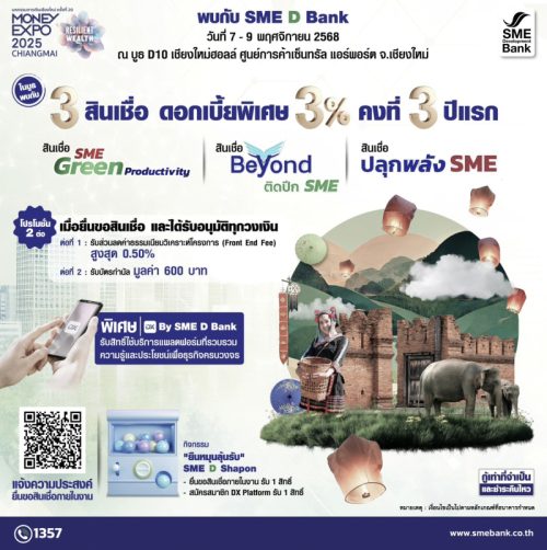 1 min read การเงิน-การลงทุน SME D Bank ยกขบวน ‘พัฒนาคู่เติมทุน’ ร่วมงาน ‘Money Expo เชียงใหม่ 2025’ 3 พฤศจิกายน 2025 admin