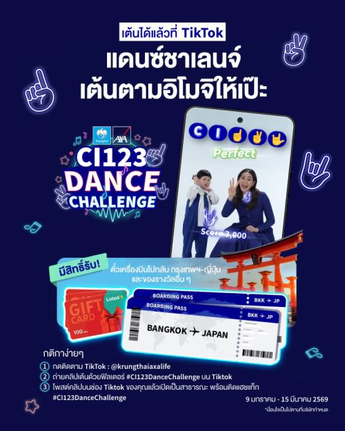 1 min read ประกัน กรุงไทย-แอกซ่า ประกันชีวิต พร้อมน้องเกล และคุณชมพู่ ชวนทุกท่าน ร่วมแดนซ์กับกิจกรรม CI 123 Dance Challenge 15 มกราคม 2026 admin