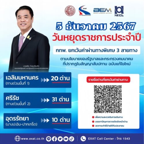 1 min read ข่าวประชาสัมพันธ์ “สุริยะ” ช่วยพี่น้องประชาชนลดภาระค่าใช้จ่ายในการเดินทางให้การทางพิเศษฯ ยกเว้นค่าผ่านทางด่วน 3 สายทาง วันที่ 5 ธันวาคม 2567 2 ธันวาคม 2024 admin