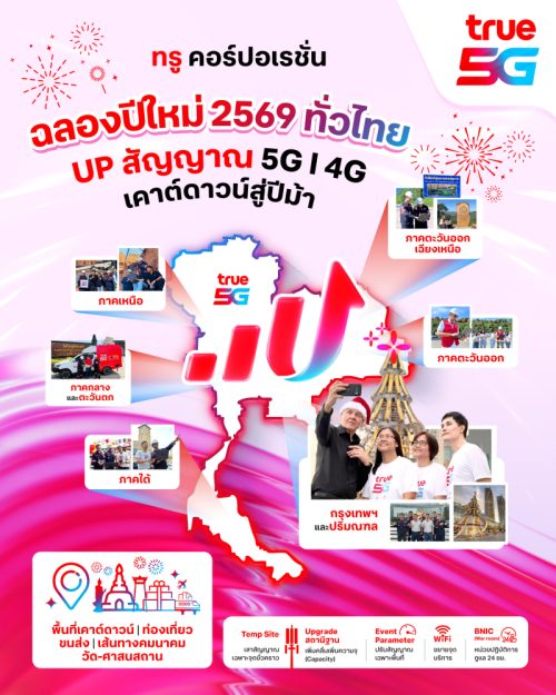 1 min read IT-Digital ทรู คอร์ปอเรชั่น UP สัญญาณ 5G รับเคานต์ดาวน์สู่ปีม้าทั่วไทย พร้อมเชื่อมประเทศไทยสู่เวทีโลก รองรับ CNN ถ่ายทอดสด New Year’s Eve จากไอคอนสยาม ย้ำคืนส่งท้ายปีของไทยต้องไม่สะดุด 25 ธันวาคม 2025 admin