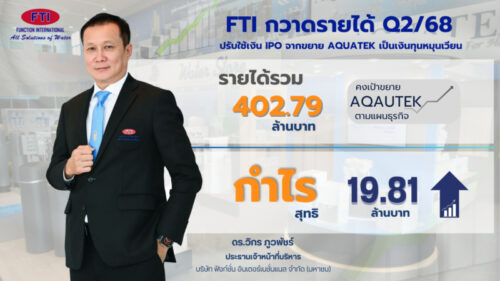 1 min read การตลาด ธุรกิจ FTI กวาดรายได้ Q2/68 ที่ 402.79 ลบ. กำไร 19.81 ลบ. ปรับใช้เงิน IPO จากขยาย AQUATEK เป็นเงินทุนหมุนเวียน คงเป้าขยาย AQAUTEK ตามแผนธุรกิจ 15 สิงหาคม 2025 admin
