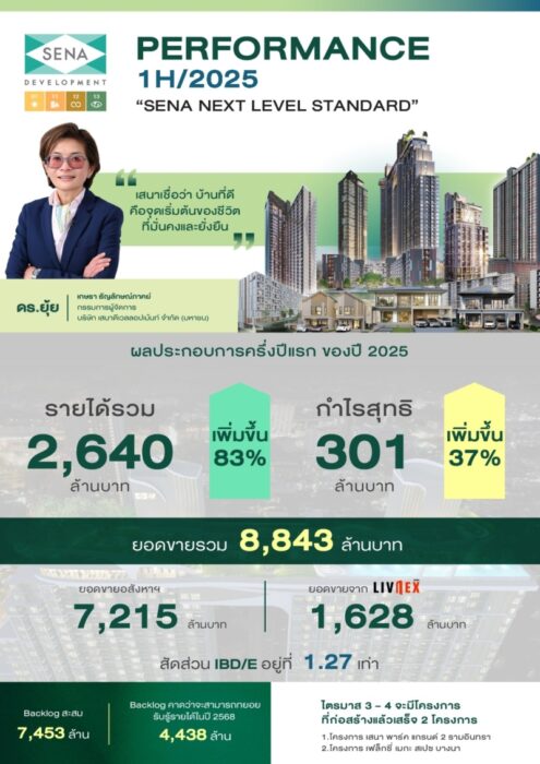 1 min read อสังหา เสนา มั่นคง รายได้รวม 2,640 ลบ. กำไรเด่น 11% ตุน Backlog 7,453 พันลบ. การเงินแข็งแกร่ง เตรียมขายหุ้นกู้เสริมพอร์ตการลงทุน 15 สิงหาคม 2025 admin