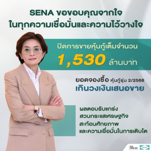 1 min read อสังหา SENA ขอบคุณทุกความเชื่อมั่นปิดการขายหุ้นกู้ครบ 1,530 ล้านบาท ยอดจองซื้อเกินวงเงินเสนอชาย สะท้อนศักยภาพและความเชื่อมั่นในการเติบโต 18 กันยายน 2025 admin