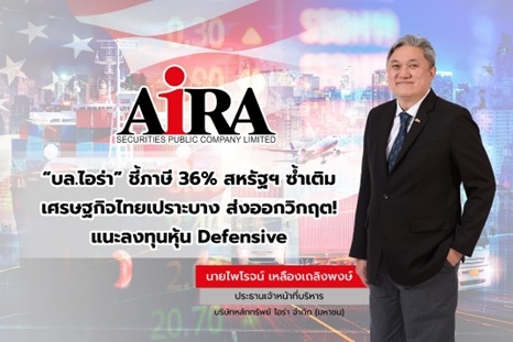 1 min read การเงิน-การลงทุน “บล.ไอร่า” ชี้ภาษี 36% สหรัฐฯ ซ้ำเติมเศรษฐกิจไทยเปราะบาง ส่งออกวิกฤต! แนะลงทุนหุ้น Defensive 22 กรกฎาคม 2025 admin