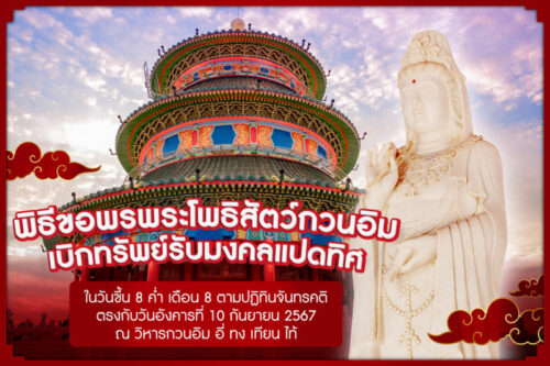 ข่าวประชาสัมพันธ์ วิหาร “อี่ ทง เทียน ไท้” ชวนร่วมพิธีขอพร-เบิกทรัพย์พระโพธิสัตว์กวนอิม 8 กันยายน 2024 admin