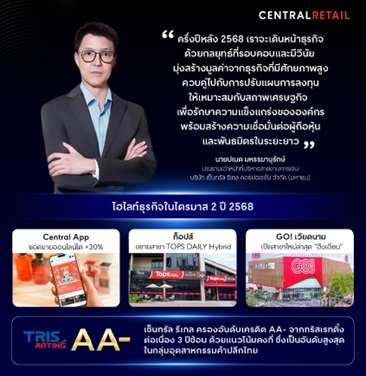 1 min read การเงิน-การลงทุน เซ็นทรัล รีเทล โชว์ผลประกอบการ 9 เดือนแรก ปี 68 กวาดรายได้รวม 194,440 ล้านบาท 13 พฤศจิกายน 2025 admin