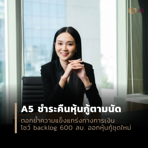 1 min read การเงิน-การลงทุน A5 ชำระคืนหุ้นกู้ตามนัด ตอกย้ำความแข็งแกร่งทางการเงิน โชว์ backlog 600 ลบ. ออกหุ้นกู้ชุดใหม่ 3 พฤศจิกายน 2025 admin