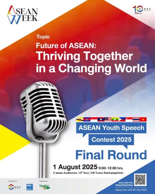 1 min read ข่าวประชาสัมพันธ์ การประกวด ASEAN Youth Speech Contest 2025 หัวข้อ Future of ASEAN : Thriving Together in a Changing World 23 กรกฎาคม 2025 admin