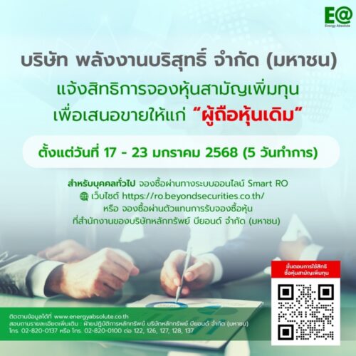 1 min read การเงิน-การลงทุน อย่าพลาด! EA ใช้สิทธิเพิ่มทุน 17-23 ม.ค.นี้ สัดส่วน 1:1 หุ้นละ 2 บาทพร้อมวอร์แรนต์ฟรี! 13 มกราคม 2025 admin