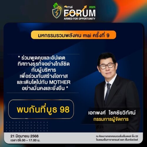 1 min read การเงิน-การลงทุน MOTHER บุกงาน mai FORUM ครั้งแรก! พร้อมโชว์ศักยภาพธุรกิจเต็มสูบ 17 มิถุนายน 2025 admin
