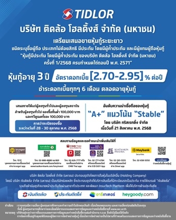 1 min read การเงิน-การลงทุน TIDLOR จ่อออกหุ้นกู้ครั้งแรก สร้างความมั่นใจด้วยเรทติ้งระดับ A+ อายุหุ้นกู้ 3 ปี 25 สิงหาคม 2025 admin