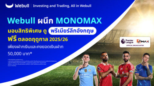 1 min read การเงิน-การลงทุน ข่าวประชาสัมพันธ์ Webull ผนึกพันธมิตร Monomax มอบสิทธิพิเศษดู “พรีเมียร์ลีกอังกฤษ” ฟรีตลอดฤดูกาล 2025/26 เพียงฝากเงินและคงยอดเงินฝากห้าหมื่นบาท 8 สิงหาคม 2025 admin